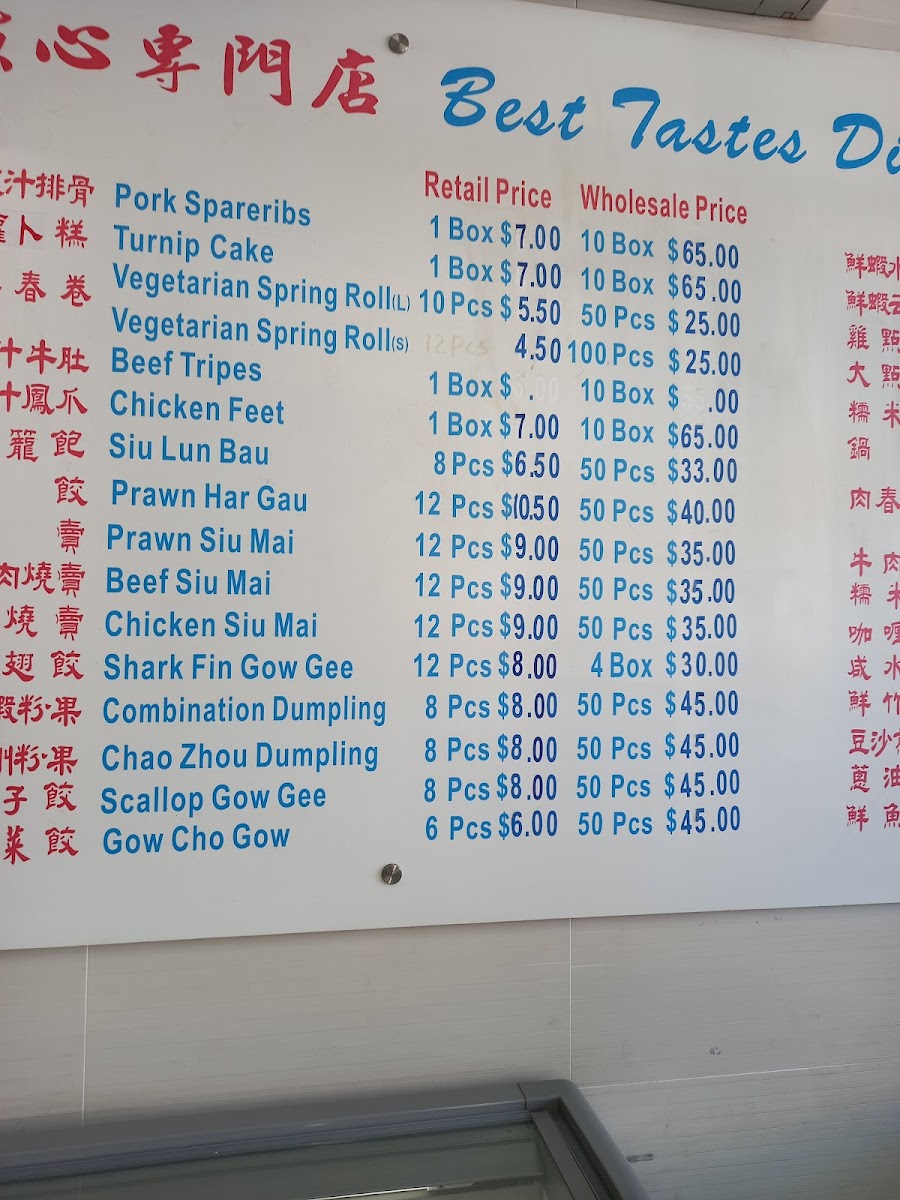 The menu at Best Tastes Dim Sim on 11 Henley Rd in Homebush West offers a concise yet enticing selection that reflects traditional dim sum flavors. Reviewers will appreciate the variety of classic dishes, from Spareribs to Beef Tripes and Chicken Feet, catering to both adventurous and familiar palates. The vegetarian options, including Turnip Cake, Vegetarian Spring Roll, and 齋春卷, are thoughtfully prepared, providing satisfying choices for non-meat eaters. Signature dumplings such as Prawn Siu Mai, Chicken Siu Mai, and Shark Fin Gow Gee stand out for their delicate flavors and authentic texture. While some items like 蘿卜糕 are simple, they carry a homely charm that complements the more indulgent offerings. Overall, the menu balances traditional favorites with vegetarian alternatives, delivering a well-rounded dim sum experience that is both accessible and flavorful, making Best Tastes Dim Sim a go-to spot for a quick yet satisfying taste of classic Chinese cuisine.